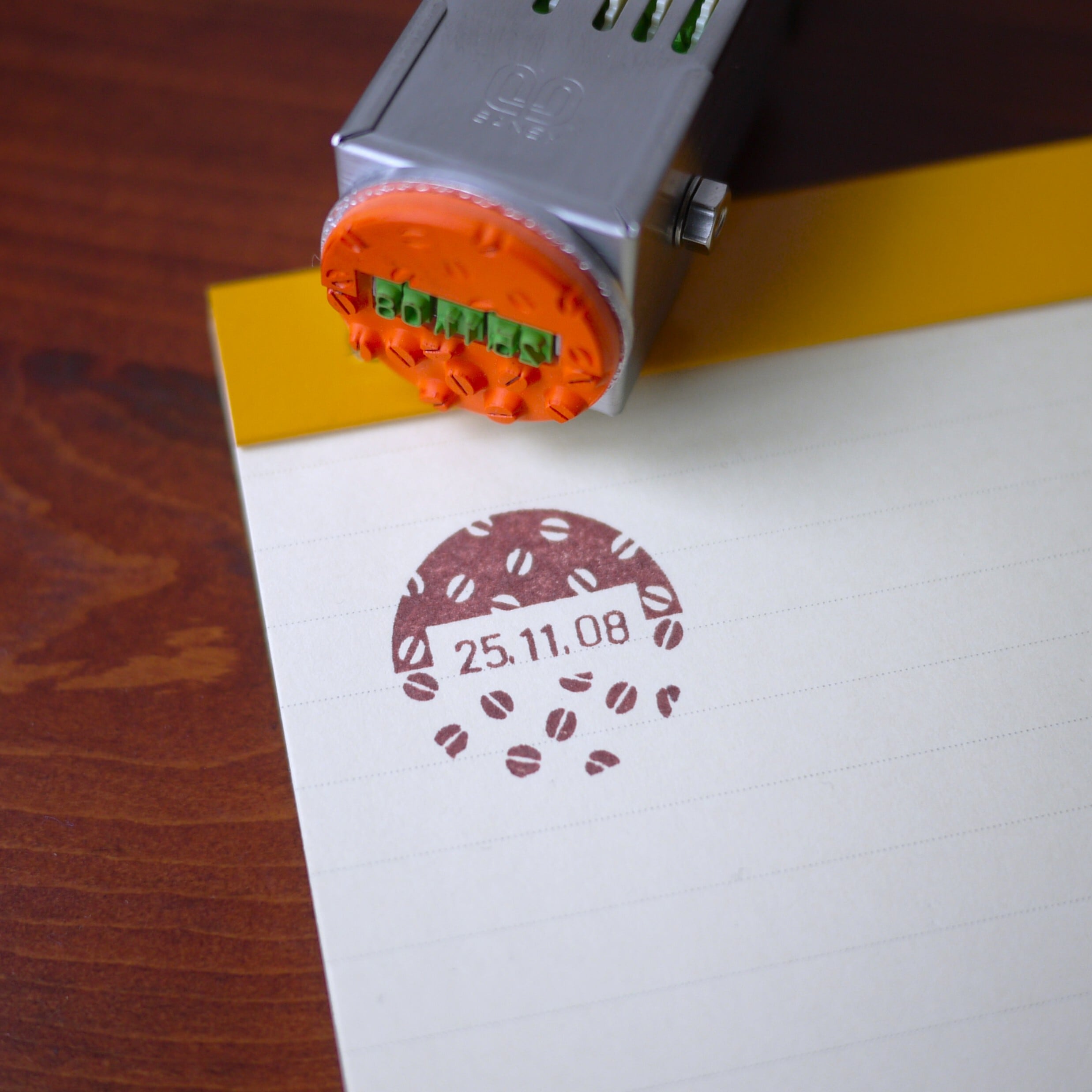 コーヒーの日付印(豆の総柄デザイン) 福わけはんこ
