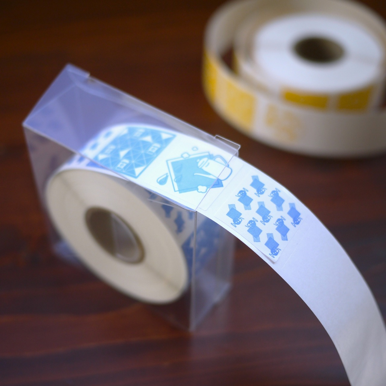 ロールシールの使い始めは、透明ケースから取り出して、マスキングテープをゆっくり剝がして(写真10枚目)ご使用ください。