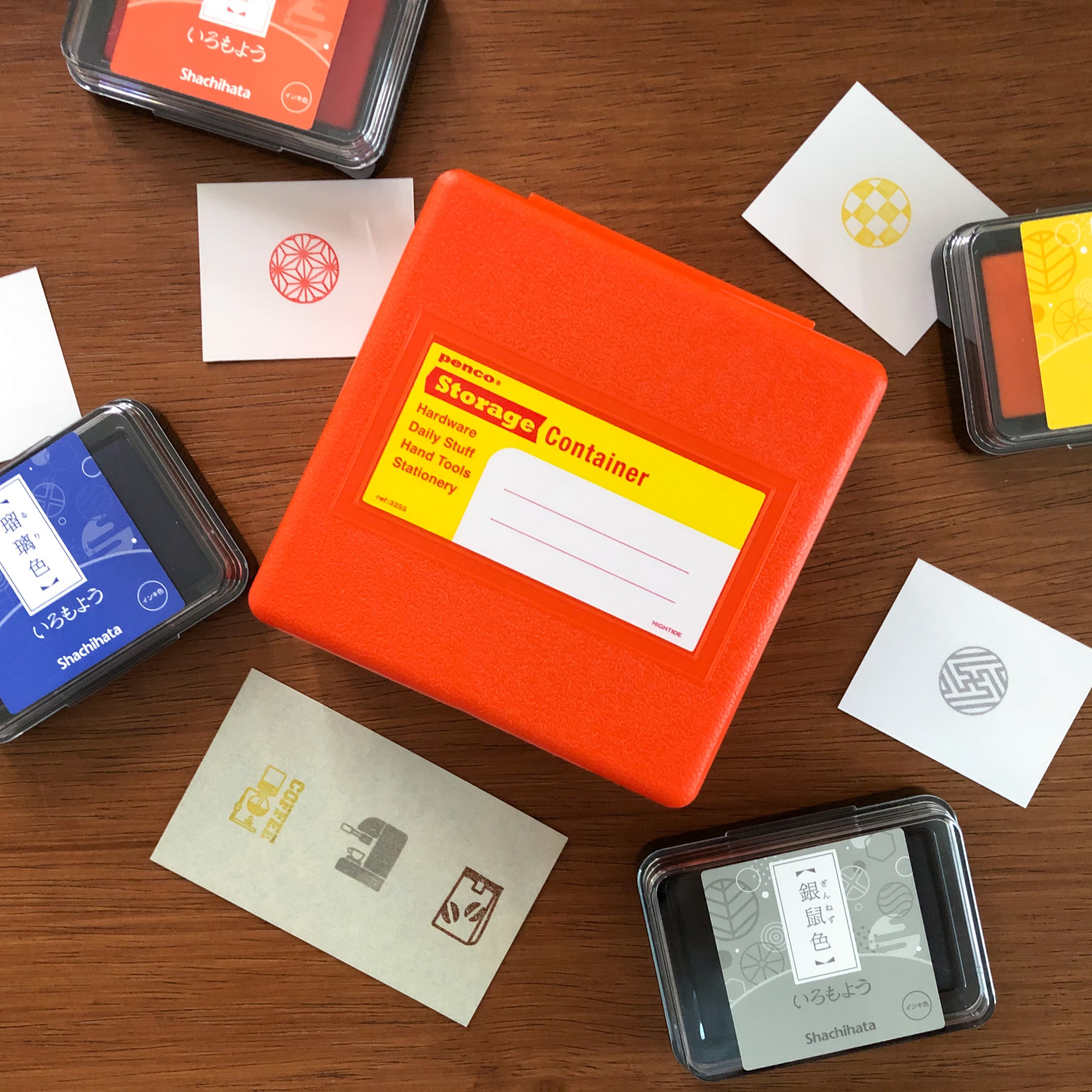 正方形のコンパクトな形ですので、はんこやインクのほか、机の上の小物入れにおすすめです。