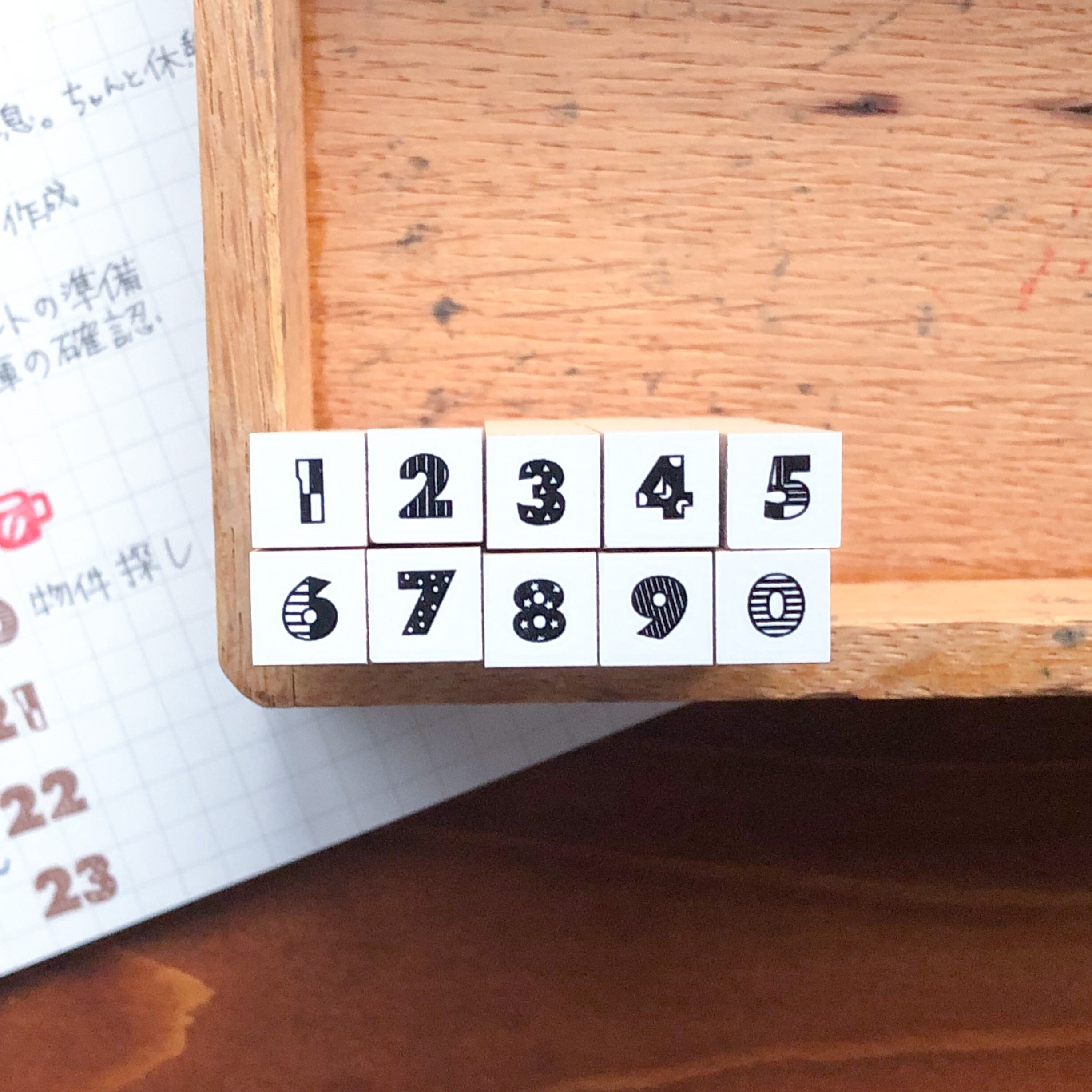福わけはんこの数字は、1から0までデザインが異なるポップなはんこです。